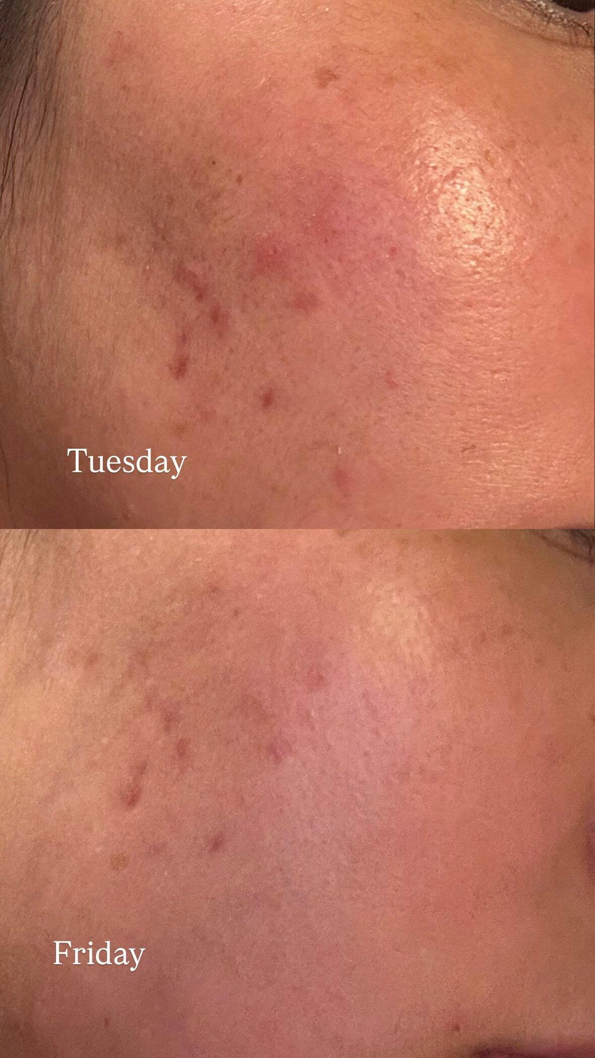 Let me tell you I have lingering hormonal acne PIE scars all over the bottom half of my face and I am prone to redness whenever a new spot appears. I've started using this end of September now it's December and I have noticed a 70% reduction in redness on my face.