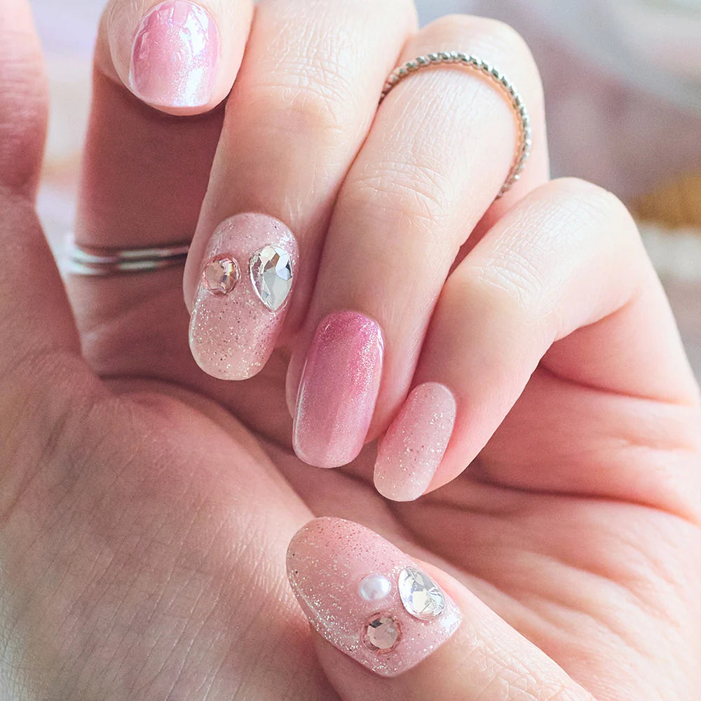 A magnetic glitter base layered with iridescent foil and embossed shell-like textures, finished with pearl and crystal accents — like ocean treasures glistening beneath the waves.
